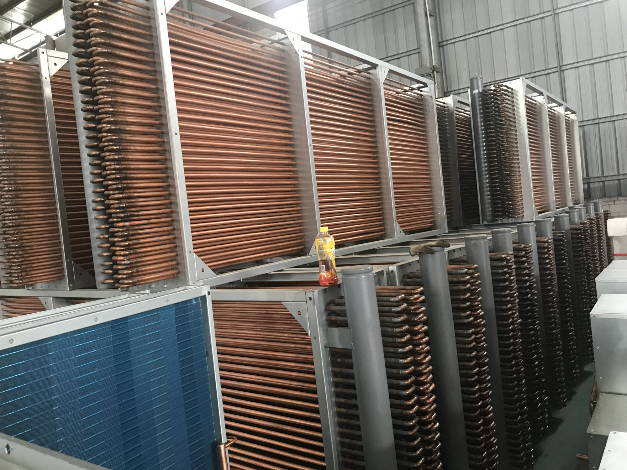 引进先进螺旋片盘管加热器生产线,专利的盘管无焊接口加工技术,盘管连续成型工艺,换热器盘管两端弯位没有焊接口,解决蒸汽盘管长期受冷热冲击焊接口容易断裂的薄弱的环节,防止盘管焊接口拉裂而漏蒸汽,为织染行业定型机、新能源电池制造等中低压蒸汽加热设备,提供高效、可靠、耐用、不泄漏的高质量蒸汽盘管换热器。